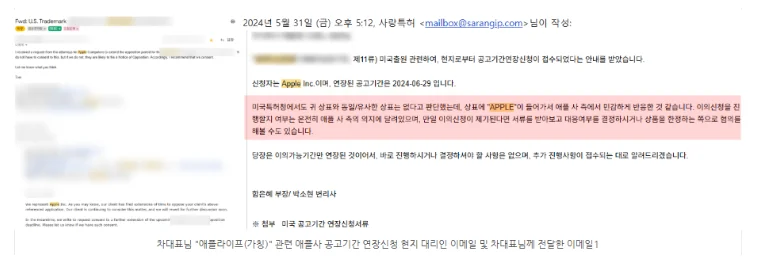 “애플에서 이의신청 기간 연장을 신청했습니다.”