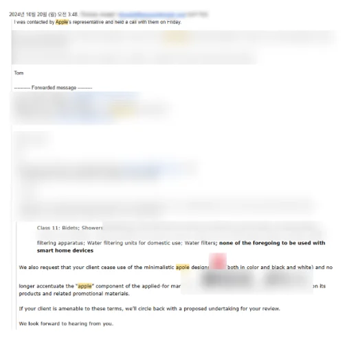 3. 미국상표출원 중 애플의 이의신청 예고, C사의 해결사례