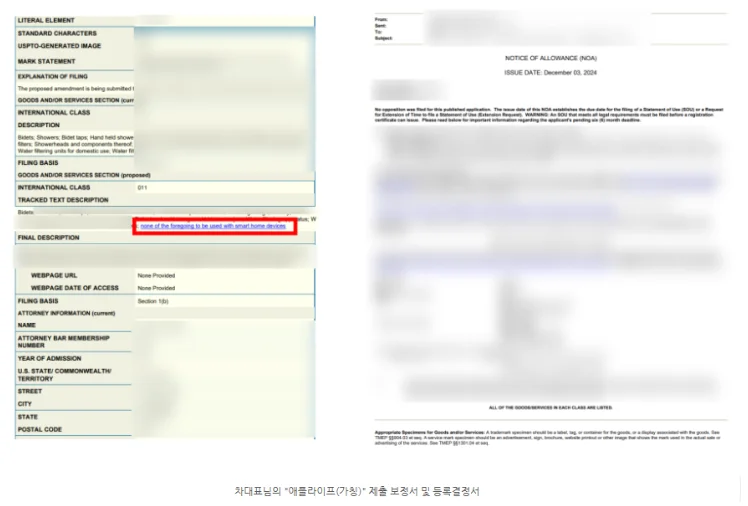 이에 따라 ‘스마트홈 기기와의 비사용’ 문구를 포함한 보정서를 신속히 제출했습니다. 이후 애플은 이의신청을 철회했고, 상표는 이의절차 없이 최종 등록 결정이 내려졌습니다.