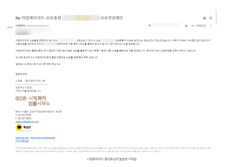 그 결과, 현지 대리인 역시 등록 가능성이 높다고 판단했고, E사는 이 전략을 통해 아랍에미리트 상표 등록에 성공할 수 있었습니다.