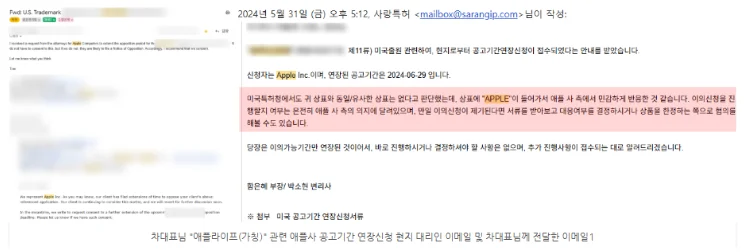 미국 특허청에 제출한 미국 상표출원이 잘 흘러가고 있었는데, 갑자기 글로벌 대기업인 애플이 이의신청 예고 했다면 솔직히 누구라도 가슴이 철렁해집니다.